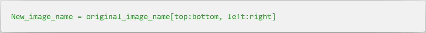 Zooming is simply selecting a smaller rectangle from the original image using slice indexing. So, the previous logic can be used to zoom-in into an image or frame using the following syntax: